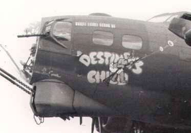 In the target area, the formation was attacked by about 60 fighters. It was flying in the Tail end Charlie, or Purple Heart corner, the position of the last plane and to the left side of the full formation. This position was definitely the most vulnerable to enemy fire and certainly was not perferred by any crew. The bomber was hit at the first passage of the fighters and it had engine #4 on fire, and its wings and elevators were badly damaged. The crew was ordered to bail out but only five got out in time (and became POW). The plane went down in a spin and lost it's right wing. Shortly after it exploded in mid-air, killing the four others of it's crew.