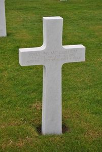 Lt Col McCollum, who had led the 3rd Battalion since its landing in Normandy, crossed the Wurm River from his command post in Rimburg to check the companies' positions and to direct the movement of supplies and ammunition to the front. After making certain that the battalion's position was secure, he started to return to his command post. At this time the enemy was still directing heavy artillery fire on the crossing site and, a s Lt Col McCollum approached the bridge, a particularly heavy concentration fell in the area, killing him and so stunning the members of his party that his death was not immediately known. Late that night several search parties were sent to the area before his body could be found.