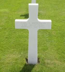 S/Sgt Carl A. Biederman graduated from Roosevelt High School in Virginia, Minnesota in 1936.He was taken prisoner on 16 December 1944 and died in a German field hospital.