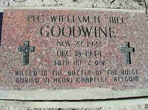Pfc William H. Goodwine joined the Regular Army on 26 November 1940.He is remembered at the Home of Peace Cemetery in Grover, Weld County, Colorado.