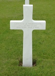 Pfc Gerald J. Mondore enlisted on 26 May 1943 in Utica, New York.Source of information: Astrid van Erp, Terry Hirsch, Carla Mans, www.wwiimemorial.com, www.ancestry.com - Family Tree / Army Enlistment Record / Headstone and Interment Record / U.S. WWII Draft Cards Young men
