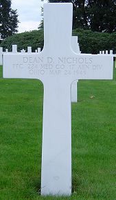 Pfc Dean D. Nichols attended Long Military Academie in New Bloomfield and Maryland University.He enlisted in Baltimore, Maryland on 23 April 1943. He trained at Camp McCall and Camp Forrest and was sent overseas in August 1944.
