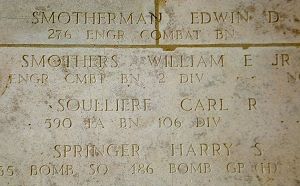 Pfc William E. Smothers Jr. was a routeman before he enlisted at Camp Croft, South Carolina on 17 February 1943. He was sent overseas in November 1943,Source of information: Raf Dyckmans, www.wwiimemorial.com, www.ancestry.com - North Carolina