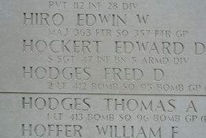 Lt Fred D. Hodges graduated from Oneonta High School in 1939.He joined the Air Corps of the Regular Army on 1 November 1939. He received his commission and pilot's wings at Moody Field, Georgia on 11 November 1942 and was sent overseas about two months before his death.