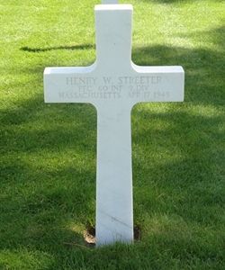 Henry Streeter enlisted on 22 August 1944 in Springfield, Massachusetts and was sent overseas on 3 January 1945.Source of information: Peter Schouteten, www.wwiimemorial.com, www.ancestry.com The Berkshore Evening Eagle, - 3 and 29 May 1945, www.archives.gov