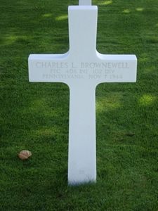 Pfc. Charles L. Brownewell enlisted in Harrisburg, Pennsylvania on 19 November 1942.Source of information: Peter Schouteten, Terry Hirsch, www.abmc.gov, www.wwiimemorial.com, www.ancestry.com - Headstone and Interment Record / 1940 Census, www.findagrave.com
