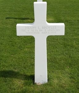 T/4 Henry L. Broyles attended high school for two years and worked on a farm. He enlisted at Fort Oglethorpe, Georgia on 4 November 1941.He landed in Africa in December 1942 where he helped garrison French Morocco. He sailed for England in July 1943 and entered France in June 1944 where he participated in the breakthrough at St. Lo as well as battle action across Belgium, Holland and Germany.
